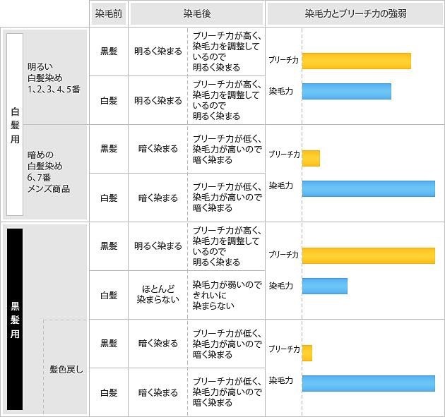 そこにブリーチ剤が浸透することでメラニン色素を破壊して白髪との色の差を少なくし、同時に酸化染毛剤で全体を染めるというメカニズムになっています。