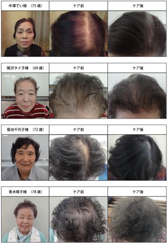 神奈川県鎌倉市の株式会社エル・ド・ボーテが50代~80代の女性138名を対象に半年間セルフケアを指導し、育毛剤と頭皮マッサージを行なってもらったところ、82.0%の女性が効果を実感しています。