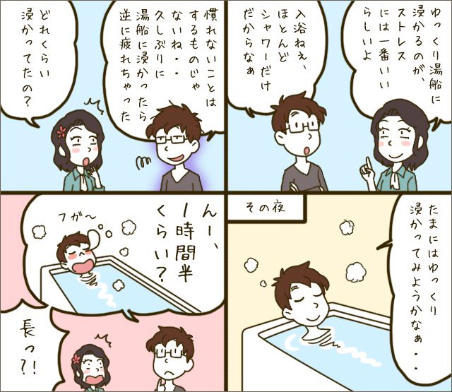 ゆっくり湯船に浸かるのは、一番手軽なリラックス方法です。