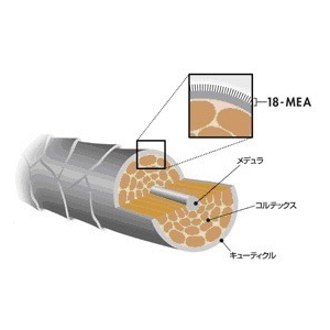 脂症の場合は、それもあり得るでしょうね。でも、一番の原因は短い毛や根元ほど健康だからなの。 生まれたての髪や根元は、ほとんど紫外線やシャンプーなど、外部からのダメージを受けていないでしょう? 本来、髪の表面はMEAという天然の脂質成分でコーティングされていて、摩擦や紫外線から髪を守っているの。 でも、MEAはブラッシングやシャンプー、紫外線などで失われやすく、一度なくなると自然再生はしないのね。 MEAは毛穴から出て来た脂質から出来ているから、毛穴に近く、しかも生えたばかりでMEAでコーティングされている短い毛や根元ほど染まりにくくなるの。 |